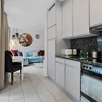 - ❓Czy w apartamencie Boutique Stay King Size Bed 700Mbps Smart Tv znajduje się kuchnia do użytku gości?Tak, apartament Boutique Stay King Size Bed 700Mbps Smart Tv wyposażony jest w wyposażony aneks kuchenny i oferuje czajnik elektryczny, lodówkę i piekarnik.